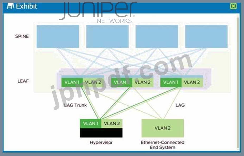 あなたの顧客は、冗長性を確保するためにサーバーを 4 つのリーフ ノードに接続したいと考えています。また、トラフィックの負荷分散のために、4 つのリンクすべてを LAG にバンドルしたいと考えています。お客様は、Contrail Command を使用してアンダーレイ ネットワークとオーバーレイ ネットワークを管理しています。