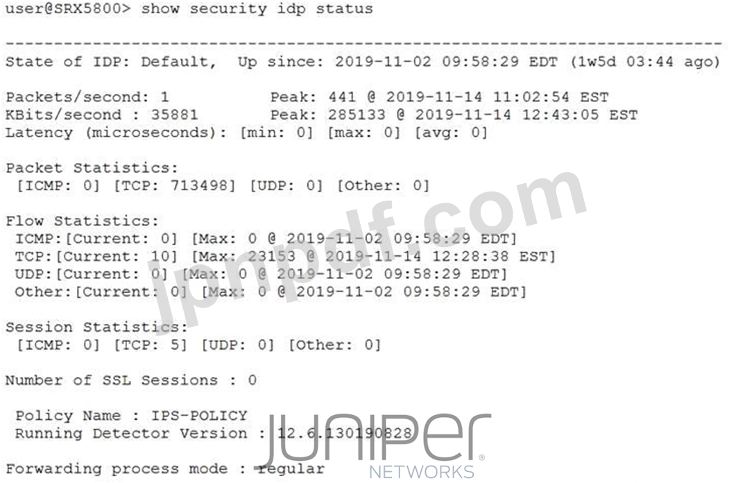 展示を参照すると、SRX5800デバイスで実行されているIPS展開モードはどれですか。