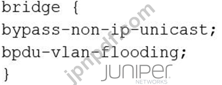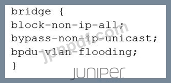 SRXシリーズデバイスで透過モードを構成しています。IPベースのトラフィックのみを許可する必要があり、BPDUは発信元のVLANに制限する必要があります。