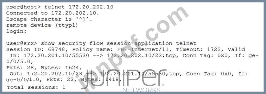 新しいブランチサイトを実装していて、インターネットトラフィックがISPに直接送信され、その他のトラフィックが会社の本社に送信されるようにしたいと考えています。この目的を達成するために、フィルターベースの転送を構成しました。展示に示されている出力を使用して、適切な機能を確認します。