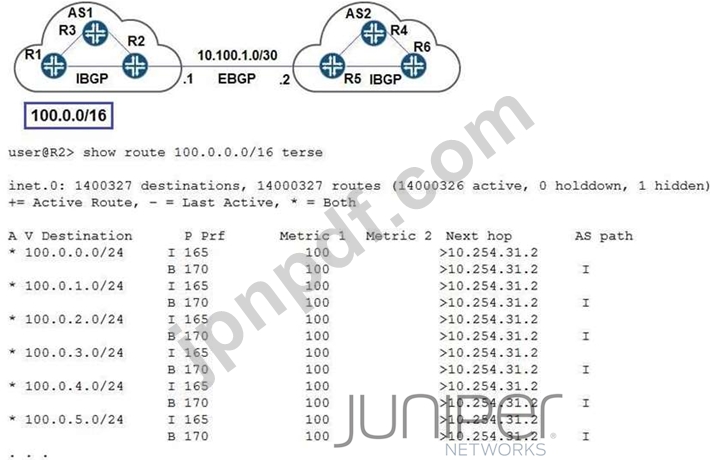 展示を参照すると、AS1からAS2への100.0.0.0/16ルートをアドバタイズする必要がありますが、R2はR5へのBGPルートをアドバタイズしていません。