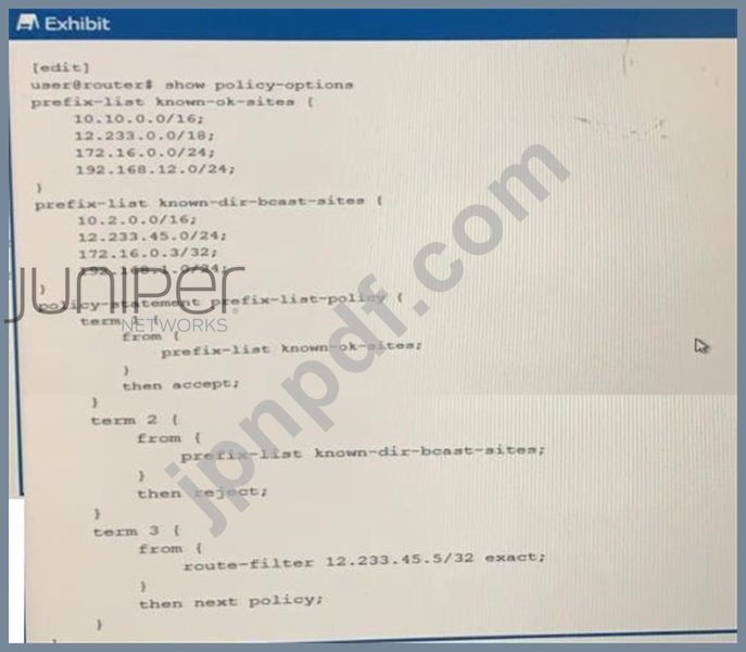 展示に示されているポリシーは、BGPネイバーシップへのエクスポートポリシーとして適用されます。