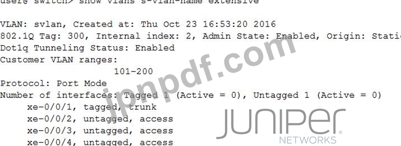 停止中に、VLAN300でのQ-in-Q実装のステータスを確認します。