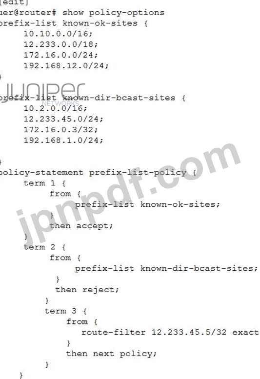 展示に示されているポリシーは、BGPネイバーシップへのエクスポートポリシーとして適用されます。