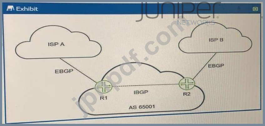 展示に示されているように、デュアルホーム接続を使用するサイトのBGPポリシーを構成しています。デフォルトでは、ISPBへのリンクを介してネットワークを出力するためにすべてのアウトバウンドトラフィックが必要です。ISPは、BGP属性を介してこの動作をオーバーライドできないようにする必要があります。この目的を達成するために、ISPが受信したルートでどのBGP属性を変更しますか?