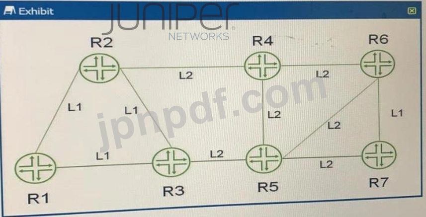 展示品を参考にすると、接続ビットはどの3台のIS-ISルーターにセットされますか?(3つ選択してください。)