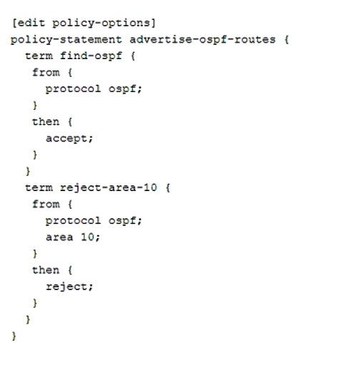 You recently committed a change to a router to reject OSPF routes sourced from area 10.
