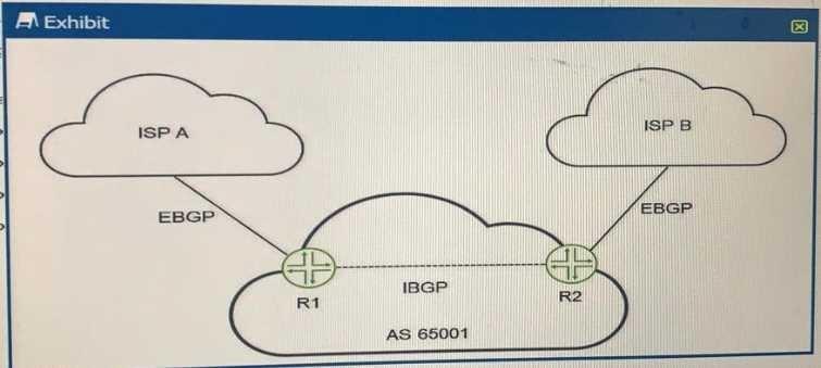 You ate configuring BGP policies for a site with a dual-homed connection as shown in the exhibit.