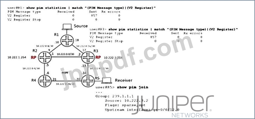 展示品を参照すると、マルチキャスト サービスの可用性を確保するためにエニーキャスト RP が実装されています。送信元は現在、グループ 239.1.1.1 を使用してマルチキャスト トラフィックを送信しており、R3 は PIM 登録メッセージを受信していますが、R2 にはアクティブな送信元情報がありません。