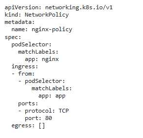You need to create a network policy that allows the nginx service to access the app service, and the app service to access the database service. Ensure tnat no otner traffic is allowed between pods in the cluster.