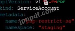 Create a new ServiceAccount named psp-restrict-sa in the existing namespace staging.