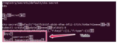Secrets stored in the etcd is not secure at rest, you can use the etcdctl command utility to find the secret value for e.g:- ETCDCTL_API=3 etcdctl get /registry/secrets/default/cks-secret --cacert="ca.crt" --cert="server.crt" --key="server.key" Output
