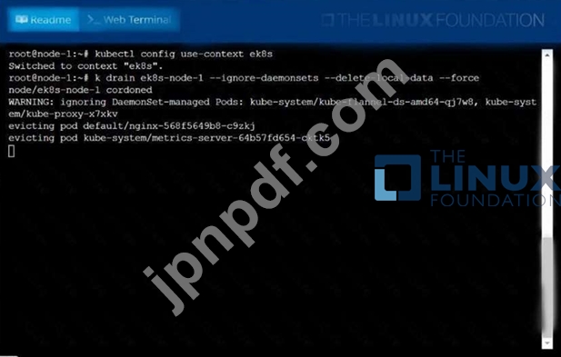 ek8s-node-1 という名前のノードを使用不可に設定し、その上で実行されているすべてのポッドを再スケジュールします。