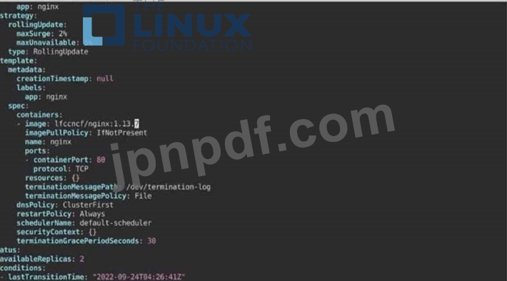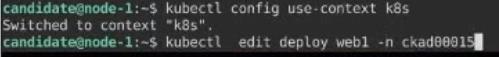 1- ckad00015 名前空間のデプロイメント web1 の Propertunel スケーリング構成を更新し、maxSurge を 2 に、maxUnavailable を 59 に設定します。