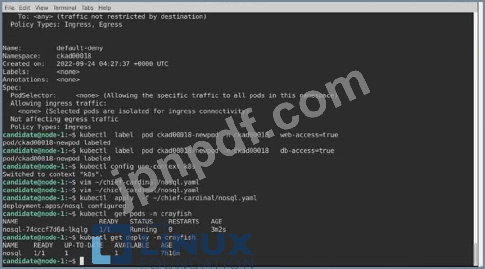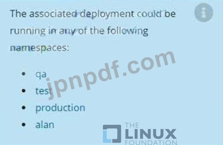 * kdpd00201 名前空間でデプロイメントを実行します。ネームスペースはすでに作成されています