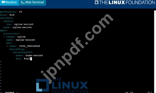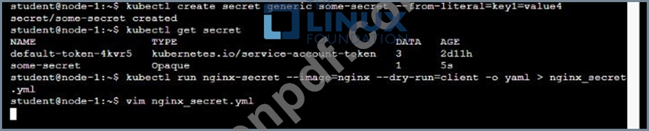 * コンテナー イメージ nginx を使用して nginx-secret という名前の nginx ポッドを開始し、ポッド内の環境変数の名前として COOL_VARIABLE を使用して、秘密キー key 1 の値を公開する環境変数を追加します