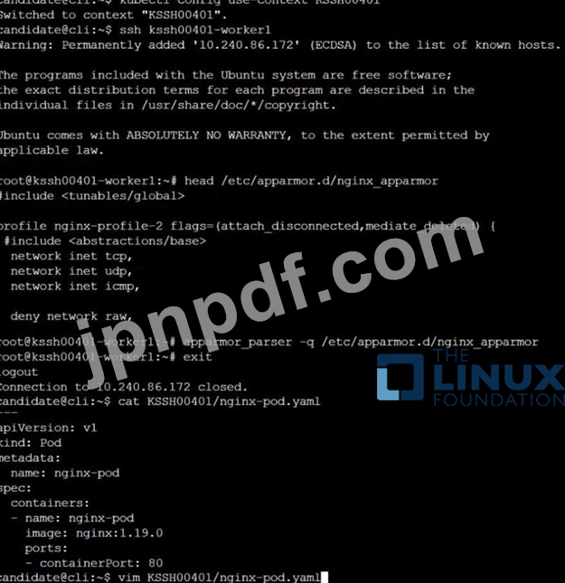 クラスター ワーカー ノードで、準備された AppArmor プロファイルを適用します。