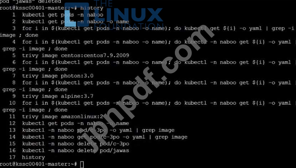 高またはクリティカルの重大度の脆弱性を持つイメージを探し、それらのイメージを使用するポッドを削除します。Trivy はクラスターのマスター ノードにプレインストールされています。Trivy を使用するには、クラスターのマスター ノードを使用します。