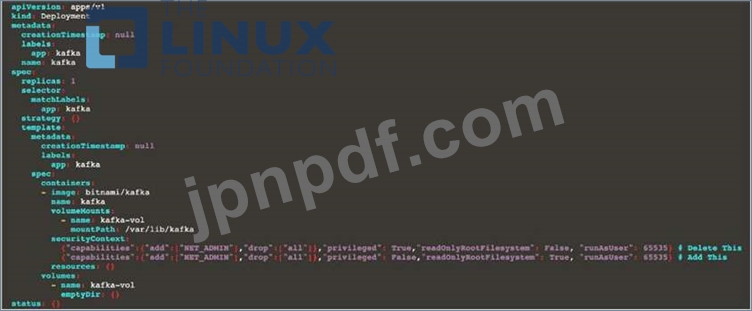 /home/cert_masters/mydeployment.yaml は、顕著なセキュリティ/ベスト プラクティスの問題であるファイル内に存在する 2 つのフィールドを修正します。