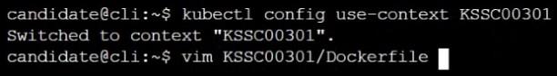 指定された Dockerfile /home/candidate/KSSC00301/Docker ファイル (ubuntu:16.04 イメージに基づく) を分析して編集し、ファイル内に存在するセキュリティ/ベスト プラクティスの顕著な問題である 2 つの命令を修正します。