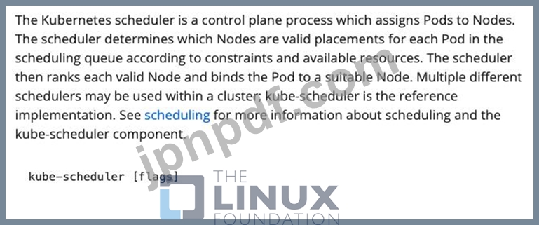 新しいポッドが作成されます。次に、ポッドがノードに割り当てられます。ポッドをどのノードに割り当てるかを決定する責任を負ったのはどの Kubernetes コンポーネントですか?