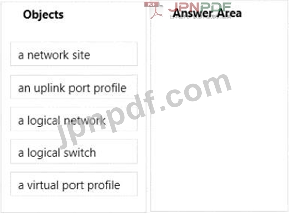 Which four objects should you create and configure in sequence? To answer, move the appropriate objects from the list of objects to the answer area and arrange them in the correct order.