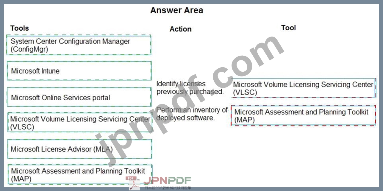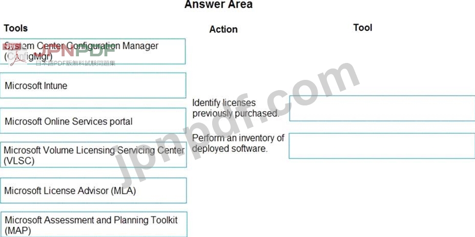 Which tool should you use to complete each action? To answer, drag the appropriate tools to the correct actions. Each tool may be used once, more than once, or not at all. You may need to drag the split bar between panes or scroll to view content.
