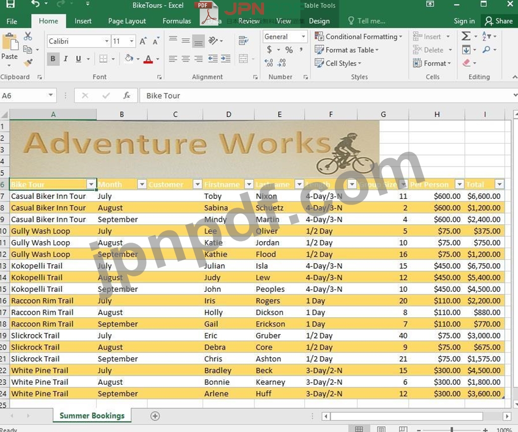 You are the owner of a small bicycle tour company summarizing trail rides that have been booked for the next
