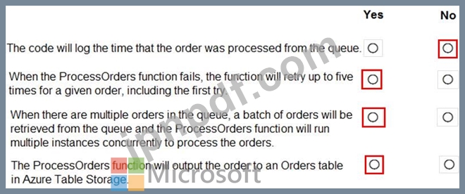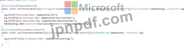 Visual Studio を使用して Azure Function App を開発しています。このアプリは、Azure Web アプリによって入力された注文を処理します。Web アプリは、注文情報を Azure Queue Storage に配置します。