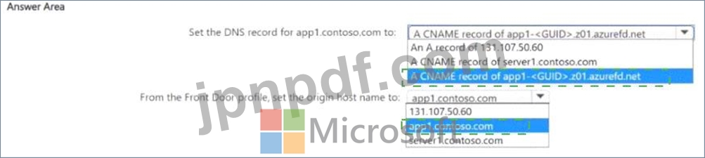 Azure Front Door を使用して App1 を公開する必要があります。ソリューションは以下の要件を満たしている必要があります。
