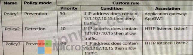 AppGW1 には、次の表に示すリスナーがあります。