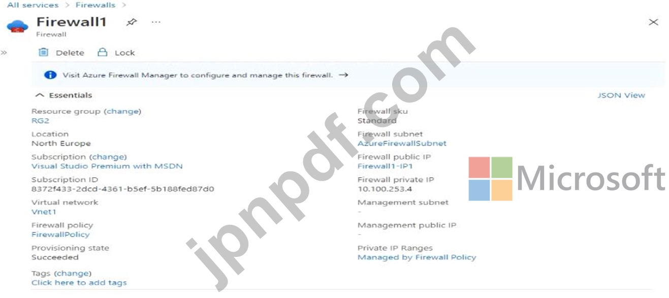 ファイアウォール 1 の図に示されている Azure ファイアウォールがあります。([ファイアウォール] タブをクリックします。)