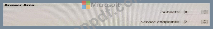 作成する必要があるサブネットとサービス エンドポイントの最小数はいくつですか? 回答するには、回答領域で適切なオプションを選択してください。