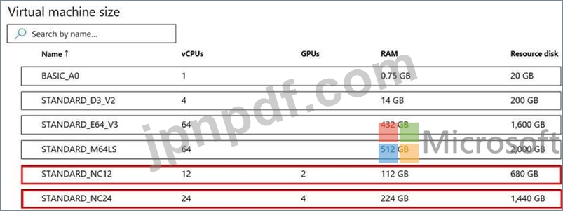 どの2つの仮想マシンサイズを使用できますか?回答するには、回答領域で適切な仮想マシンのサイズを選択します。