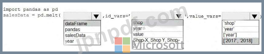 コードセグメントをどのように完成させる必要がありますか?回答するには、回答エリアで適切なオプションを選択してください。