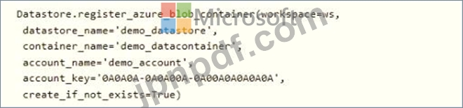 同僚は、次のコードを使用して、機械学習サービスワークスペースにデータストアを登録します。