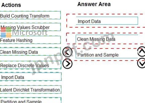 どの3つのモジュールを順番に実行する必要がありますか?回答するには、適切なアクションをアクションのリストから回答領域に移動し、正しい順序に並べます。