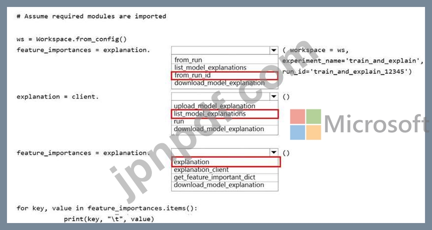 コードをどのように完成させる必要がありますか?回答するには、回答エリアで適切なオプションを選択してください。