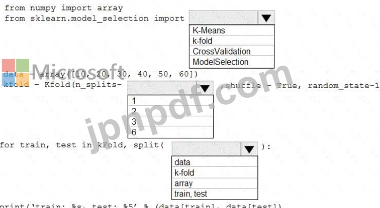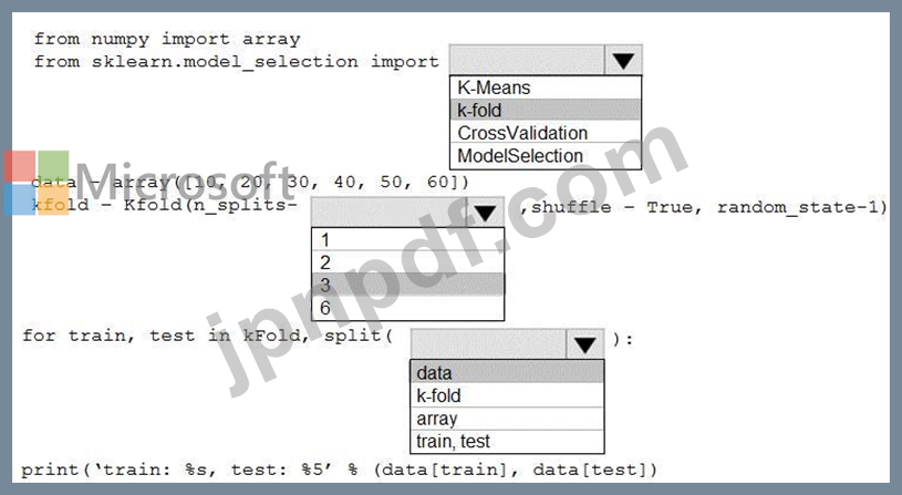 コードセグメントをどのように完成させる必要がありますか?回答するには、回答領域で適切なオプションを選択します。