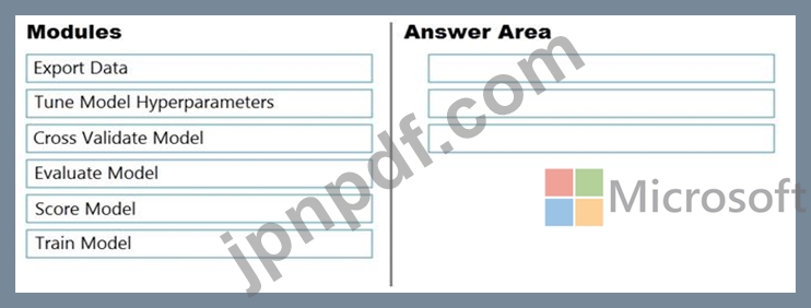 どの3つのモジュールを順番に使用する必要がありますか?回答するには、適切なモジュールをモジュールのリストから回答領域に移動し、正しい順序で配置します。