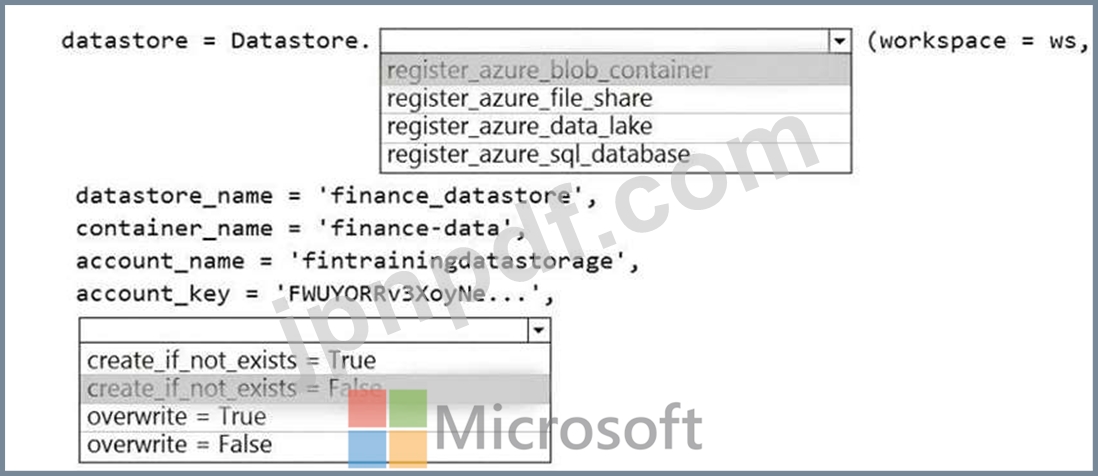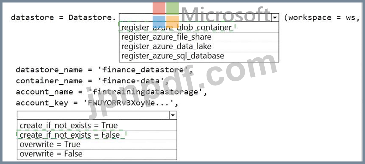 コンテナーをAzureMachineLearningワークスペースにデータストアとして登録し、コンテナーが存在しない場合にエラーが発生することを確認する必要があります。