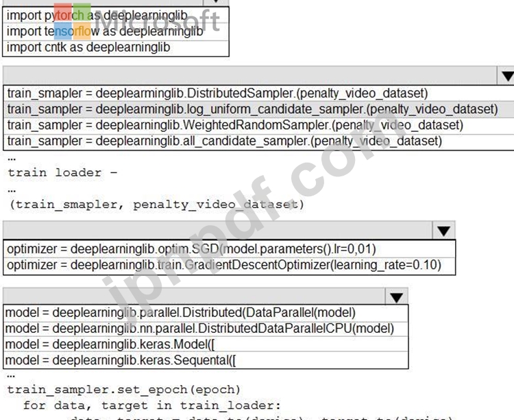 コードセグメントをどのように完成させる必要がありますか?回答するには、回答エリアで適切なオプションを選択してください。