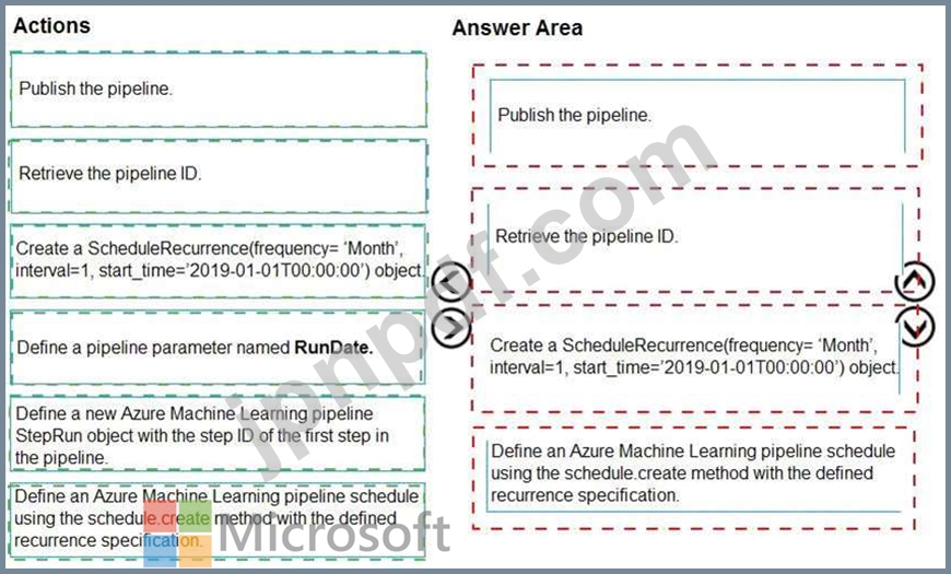 順番に実行する必要がある4つのアクションはどれですか?回答するには、適切なアクションをアクションのリストから回答領域に移動し、正しい順序に並べます。