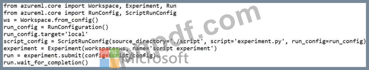 次のコードを使用して、AzureMachineLearningの実験としてスクリプトを実行します。