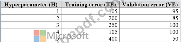 アルゴリズムのハイパーパラメータを調整しています。次の表は、さまざまなハイパーパラメータ、トレーニングエラー、および検証エラーを含むデータセットを示しています。