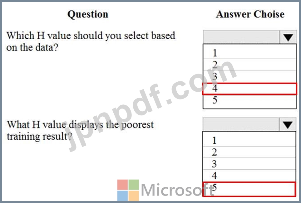 ドロップダウンメニューを使用して、図に示されている情報に基づいて各質問に回答する回答の選択肢を選択します。