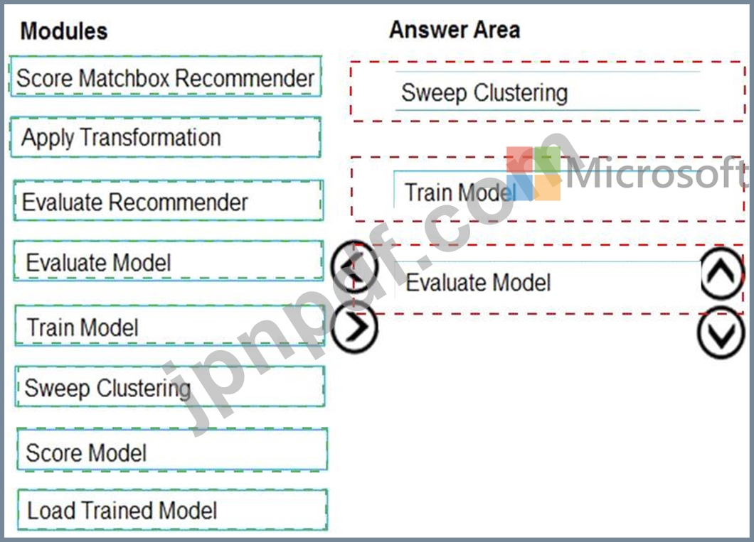 順番に使用することをお勧めする3つのモジュールはどれですか?回答するには、適切なモジュールをモジュールのリストから回答領域に移動し、正しい順序で配置します。