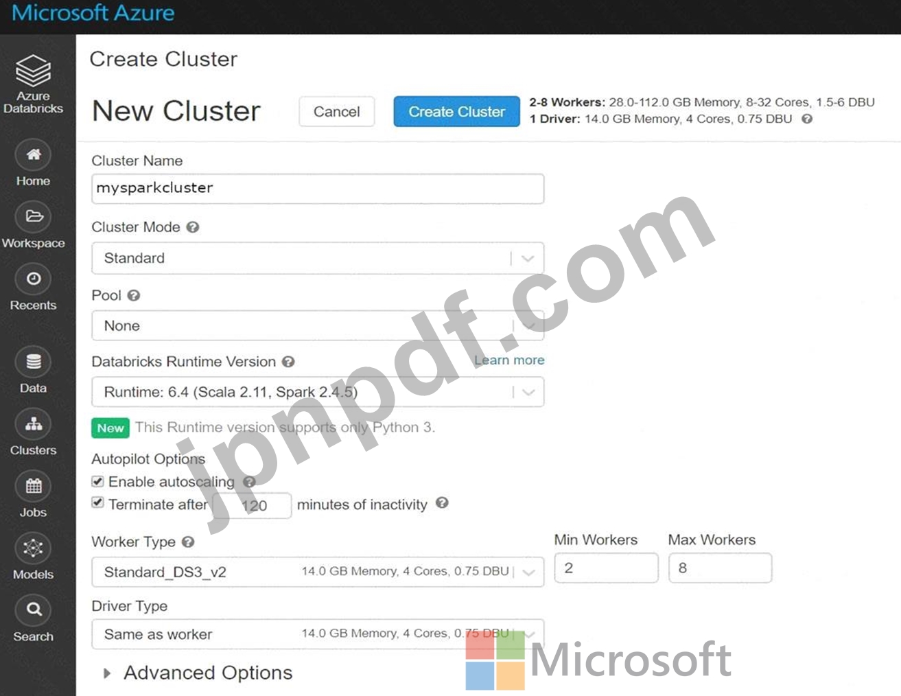 新しい Azure Databricks ワークスペースを作成します。
