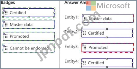 各エンティティにどのバッジを適用する必要がありますか? 回答するには、適切なバッジを正しいエンティティにドラッグします。