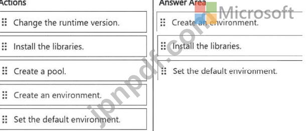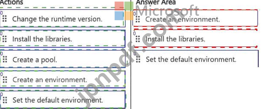 順番に実行する必要がある 3 つのアクションはどれですか。回答するには、適切なアクションをアクション リストから回答領域に移動し、正しい順序に並べます。
